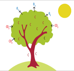 A segunda ação a ser realizada é o plantio de árvores em áreas degradadas. As árvores, durante seu crescimento, absorvem carbono da atmosfera através do processo de fotossíntese, fixando este carbono em suas biomassas. Portanto, para as atividades que tiveram suas fontes de energia fósseis substituídas por renováveis, mas que ainda continuam a emitir gases de efeito estufa é realizado o plantio de árvores nativas em áreas degradadas.